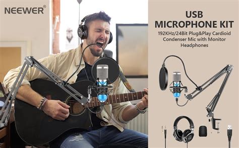 ebay Neewer USB Microphone Kit, 192KHz/24Bit Plug&Play Cardioid Condenser Mic with Monitor Headphone/3-Panel Isolation Shield/Tripod Stand for Live Streaming/YouTube Video/Recording/Game Singing/Voice Over